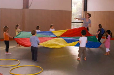Les enfants plus grands participent à des jeux collectifs, à des parcours de motricité sans les parents.