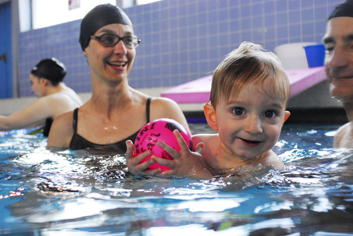 Dans le cadre des bébés nageurs, les enfants sont familiarisés avec l’élément aquatique à travers le jeu.